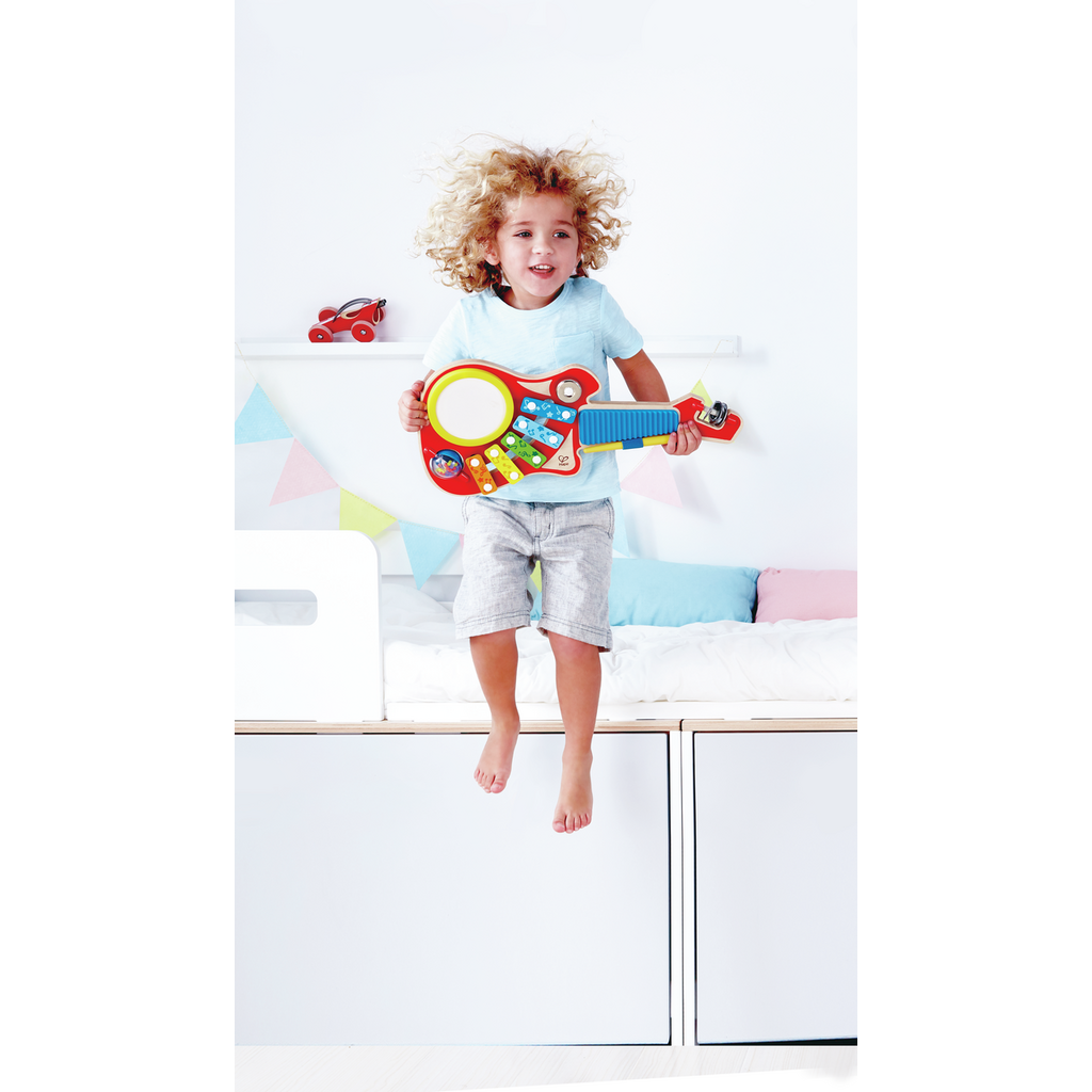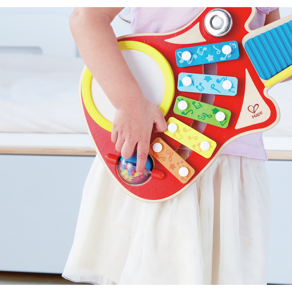 6-u-1 Music Maker je multifunkcionalni instrument igračka u obliku gitare koji sadrži šest različitih muzičkih elemenata, uključujući bubanj, ksilofon, zvečku kuglu, zvonce, dasku za grebanje i tamburicu.