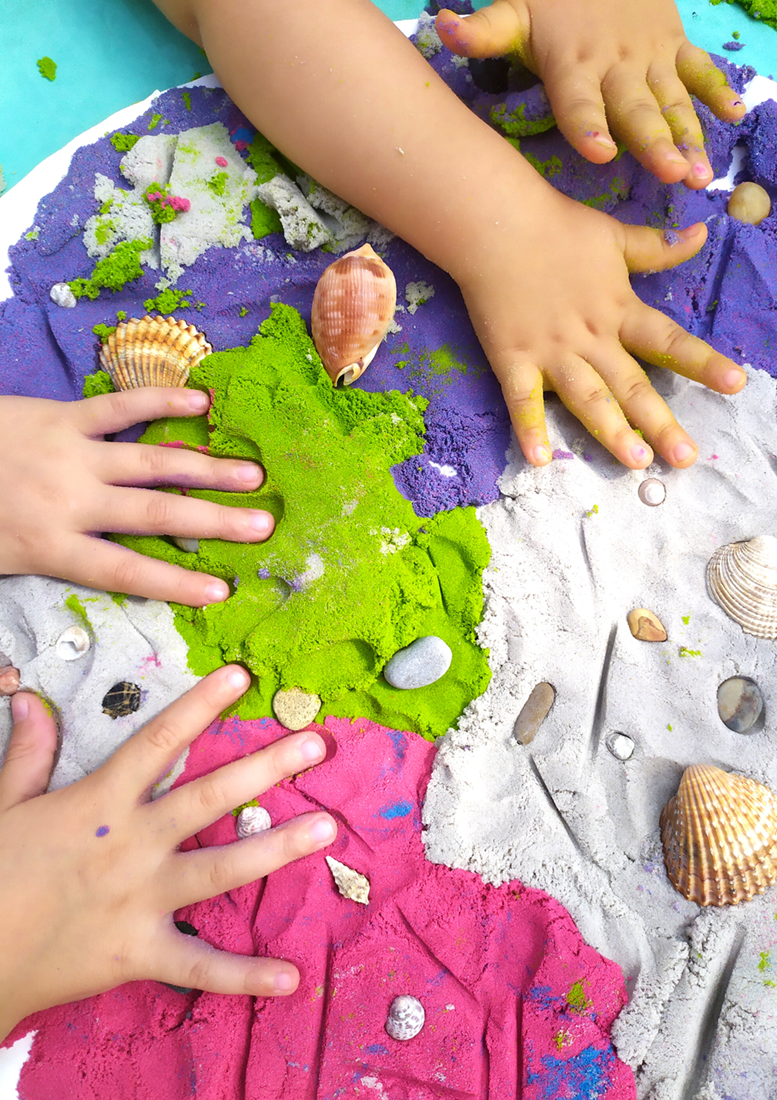 2. Dodajte dinamički pijesak koji se nalazi u setu u ljepilo. Dobro promiješajte sastojke.