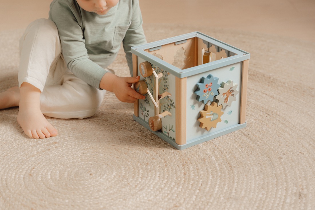 Upustite se u avanturu istražujući sve strane ove zabavne kocke aktivnosti. Svaka strana sadrži divne elemente Forest Friends i predstavlja zabavnu obrazovnu aktivnost, uključujući razvrstavanje oblika, zupčanike za okretanje, slagalice i izazovan labirint od perli na vrhu. Kroz svaki zanimljiv zadatak, vaše će dijete poboljšati fine motoričke sposobnosti i biti nadahnuto da oslobodi svoju kreativnost. Ova kocka aktivnosti ne samo da potiče znatiželju kod djece, već također osigurava sate razigranog otkrivanja.