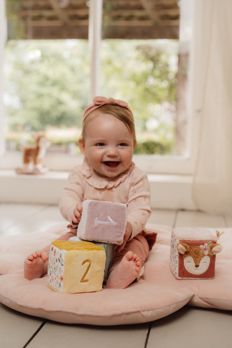 Zvonite, zveckajte i okrećite! Uz razne zvukove, teksture i značajke koje možete istražiti, ovaj zabavni set mekih kockica zabavljat će vaše dijete. Osim toga, potiče koordinaciju ruku i očiju. Veseli set sastoji se od 4 multi-senzorskih kocaka, od kojih je svaka definirana nježnim bojama i ukrašena jedinstvenim brojem. Dječje ruke otkrit će i naše šarmantne naljepnice, plišane tanjure i ogledalo. Kombinirajte s drugim igračkama iz naše kolekcije Forest Friends za koordiniranu igru.