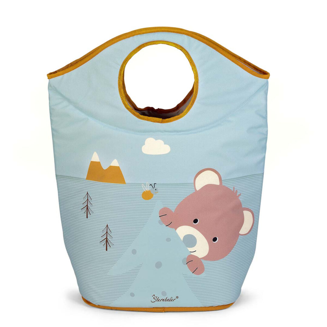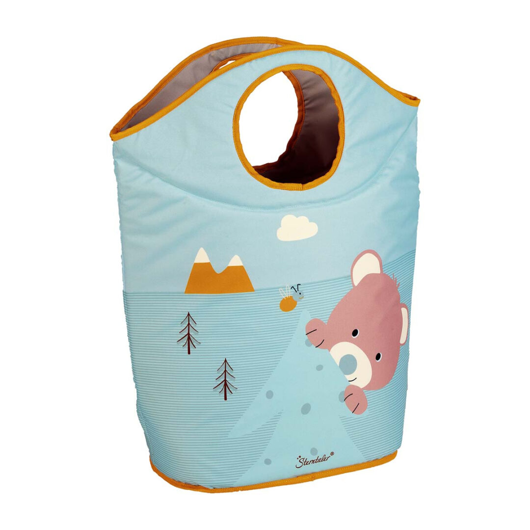 Praktična sklopiva korpa za dječiju sobu s motivom medvjeda u svijetlo plavoj boji.