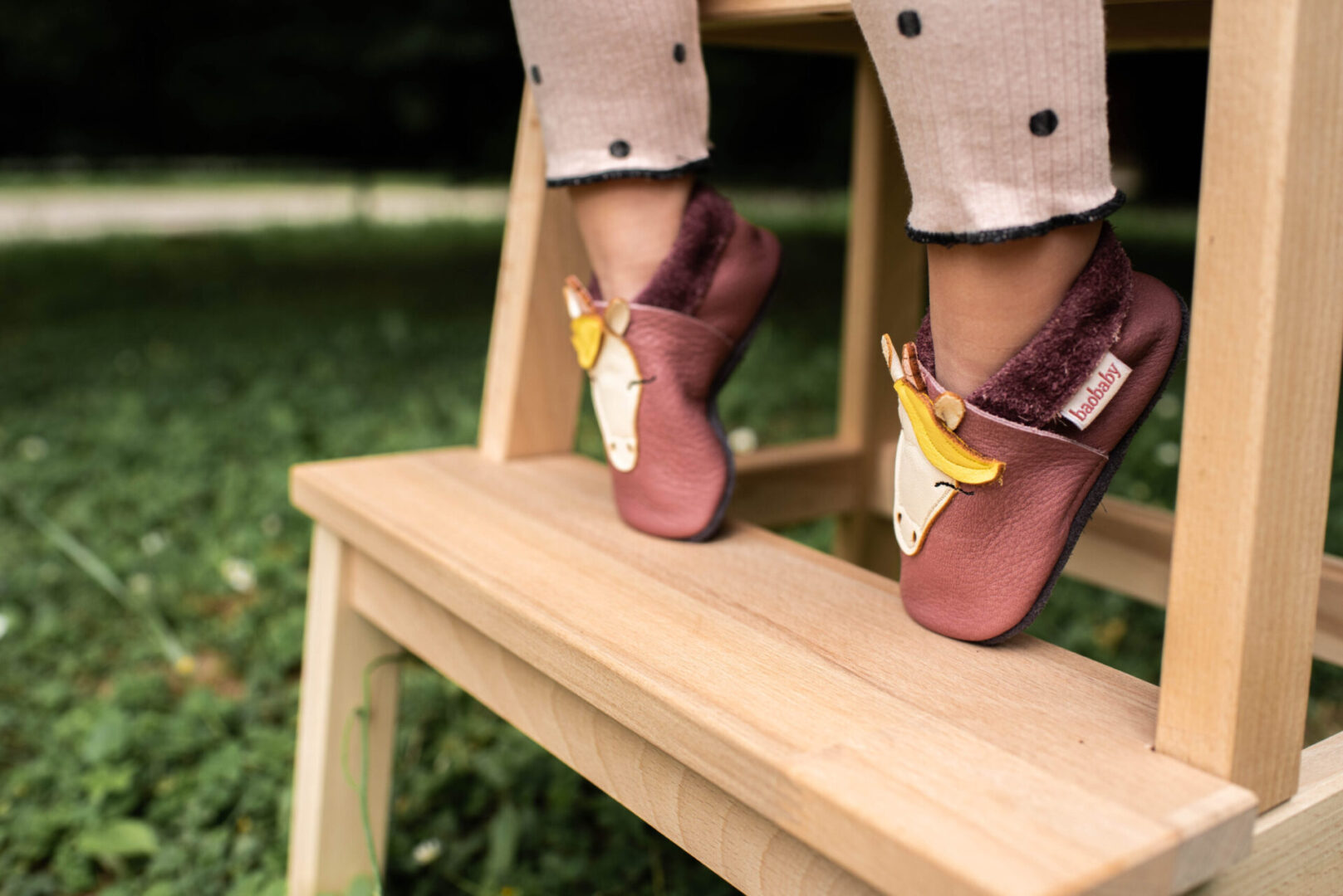 Izrađene od vrhunske biljno štavljene prave kože, sigurne za dječja bosa stopala.