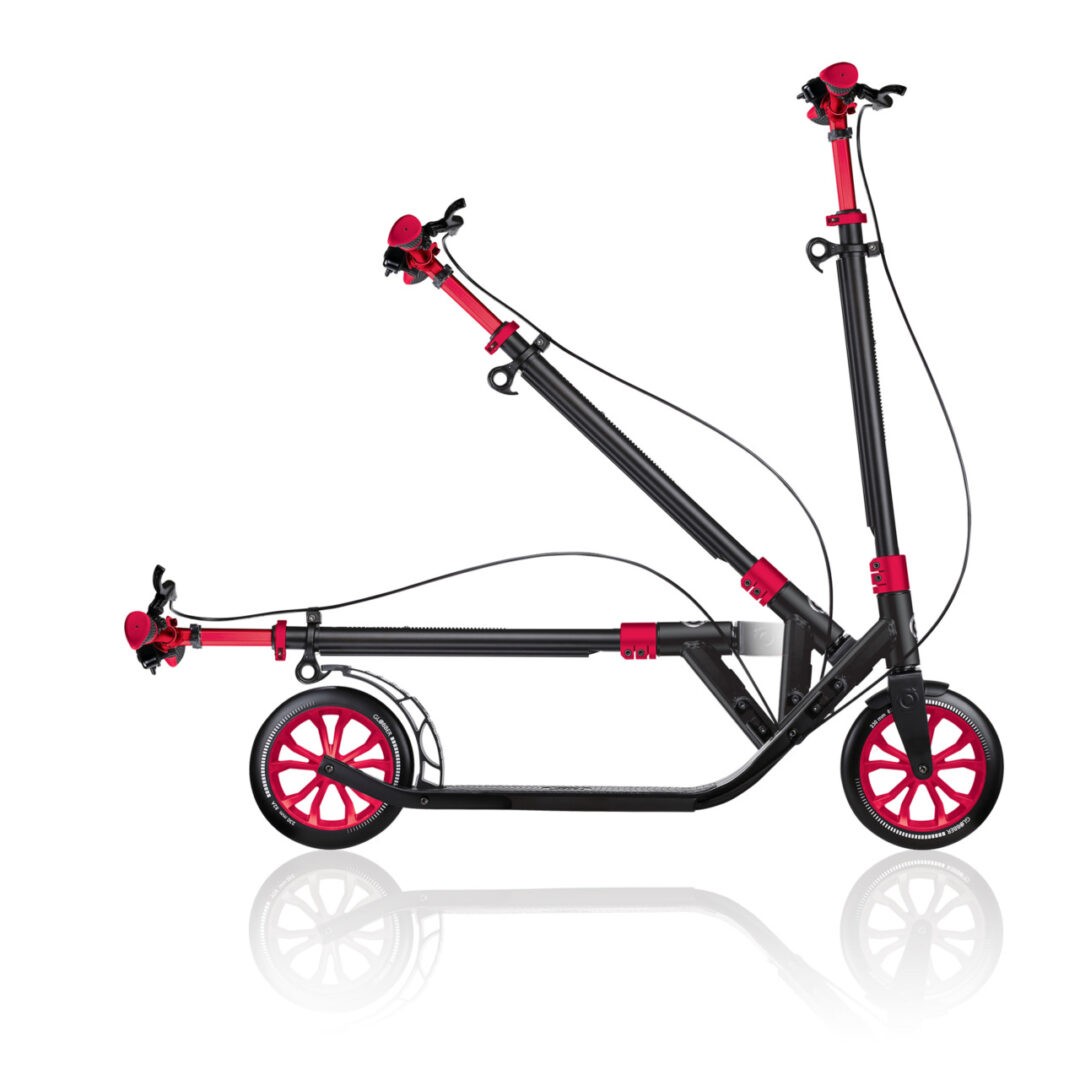 Vožnju koja može pratiti vaš raspored! ONE NL 230 ULTIMATE je skuter sa velikim točkovima za odrasle sa patentiranim sistemom sklapanja stezaljke za 1 sekundu: Podignite i povucite stezaljku na stubu da biste skuter sa velikim točkovima postavili u samostojeći ili sklopljeni način rada.